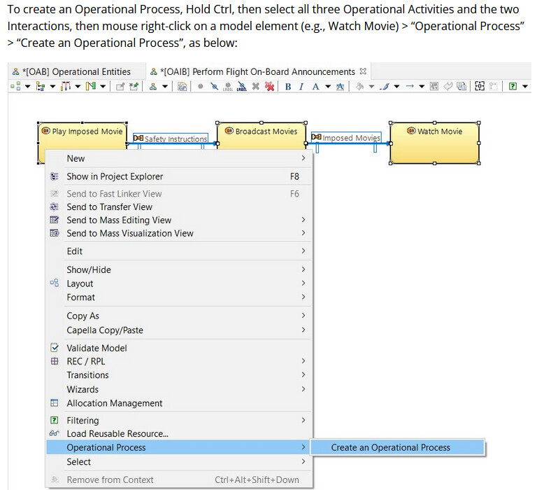 The second question refers to the two tutorials and on creating an Operational Process (Toy catapult, Chapter 6 and in the other, “Describe Operational Capabilities with Operational Process”).