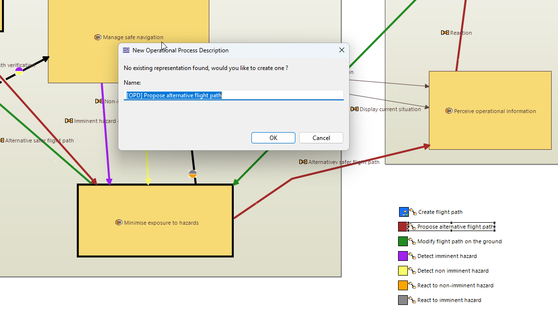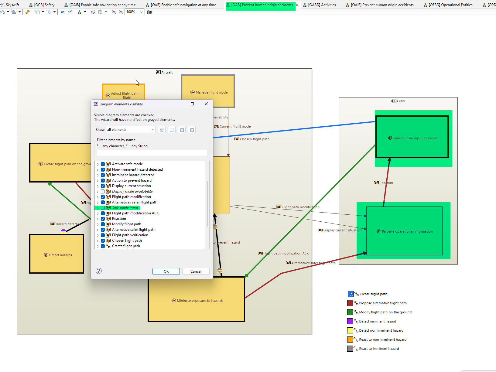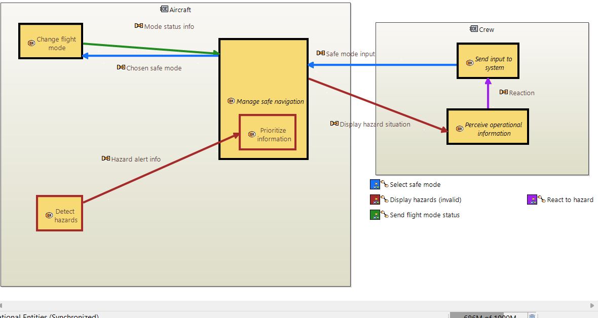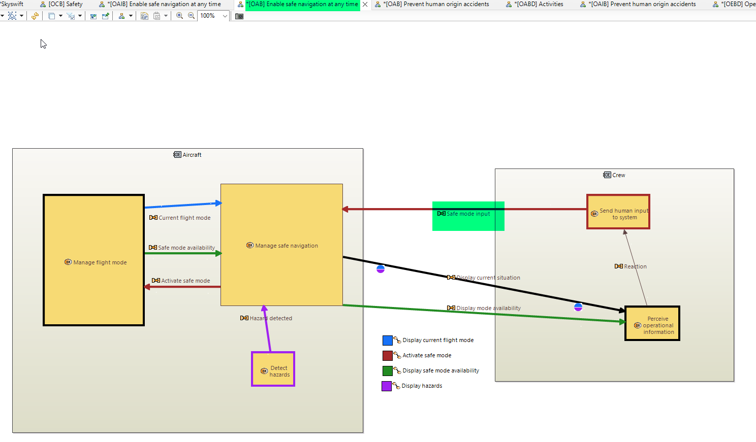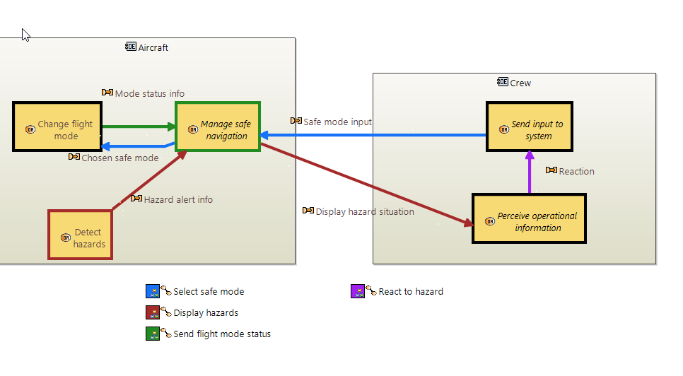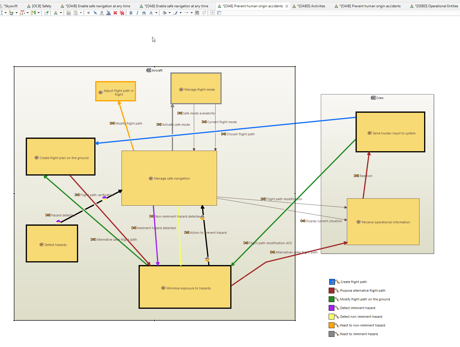 I created an OAIB to define interactions. The process was mainly iterative because, before having “Send input to system” and “Perceive operational information,” I only had “Select safe mode,” which is a very low-level activity and too restrictive. As you said, it was very iterative, and then you realize you might already be too specific, so you try to define a higher-level activity. Am I getting this right?