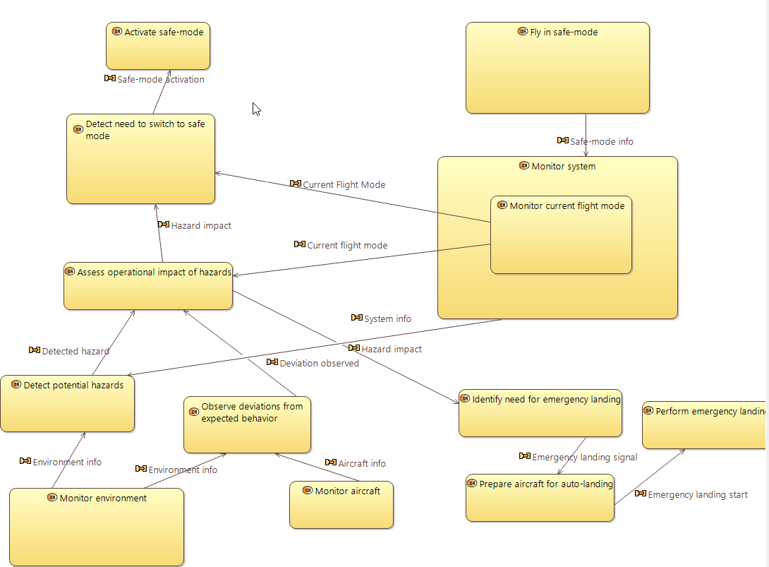 - The “manage safe navigation” activity could be a sub-activity of an higher acitvity such as “manage flight mode activity’.