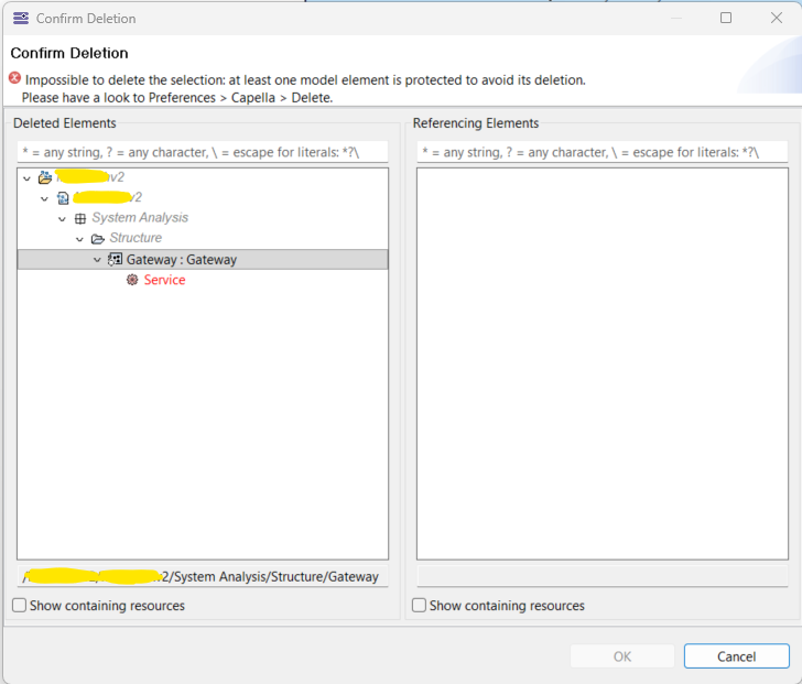 The element in the diagram is a part. If I am able to show the System Component “Gateway”, my problem may be solved. However, when I try to delete the part “Gateway”, I see a protected service under it.