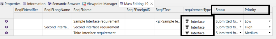 However if all requirements are of the same type (eg., all are interface requirements) then these columns appear.