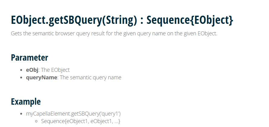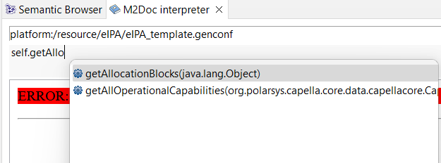 The EObject is any element from your Capella model. In your case it’s the Capella element you want to retreive requirements from. The String is the query name shown in bold in the semantic browser view. May sure you enabled requirements queries in the semantic browser then you can use the M2Doc interpreter view and select an element from your model: