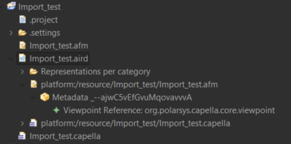 The elements then are successfully added to the new model and I can use them in diagrams. However, when I close Capella to later open it again the imported model glitches and I cant see my diagrams anymore as it seems as the system engineering file under the .aird file disappears, as can be seen in the image below and the platform:/resource/Import_test/Import_test.afm appears. Does someone know how to properly save the model, in order for it to keep saved and intact after closing Capella and opening it again later?