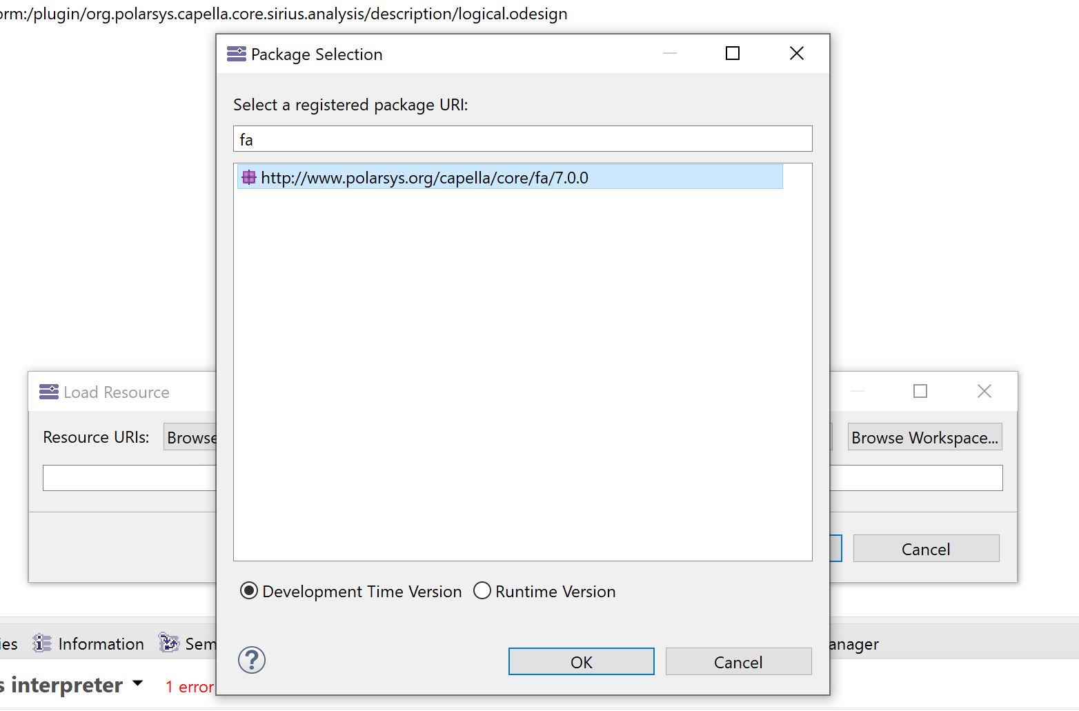 it is possible to load the ECore mode containing fa package with “Browse Registered Packages”
